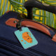 Cute cartoon drawing of a sleeping vizsla puppy. If you choose the two-sided luggage tag option, there is also a back view of the vizsla on the back of the tag. Background colour is customizable. Help your luggage stand out!