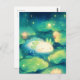 This mesmerizing design features an incredibly sweet white axolotl fast asleep and floating in a peaceful, serene pose. Rendered in a lush, luminous watercolor style, the axolotl has a soft glow and a gentle smile, with its feathery green gills fanning out gracefully. The character is nestled within a magical night pond filled with massive green lily pads and blooming peach-colored lotus flowers that radiate a soft warmth. The dark teal water is alive with glowing golden sparkles and floating light orbs that illuminate the scene with a dreamlike, ethereal quality. The overall aesthetic is enchanting, bright, and full of natural wonder, making it an irresistible choice for any fan of marine life, amphibians, and magical nature art. This cheerful axolotl postcard is a wonderful choice for sending a "sweet dreams" get-well note or a mystical greeting to a friend who needs a moment of calm. You might choose to use this cute animal card for an enchanted garden-themed birthday invitation or to celebrate a relaxing aquarium visit with your family members. It also makes a precious decorative piece for a nursery wall or a bright addition to a fantasy journal as a small token of happiness. This versatile design is also an excellent choice for a mystical dinner party invitation, a thank you note for an animal lover, or as a heartwarming way to share a message of joy for any situation or event.