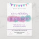 Stylish and fun birthday invitation for a girl or teen's slumber party. A modern glow effect and pretty pasel pink, purple and blue/teal colours are used in the lettering, and the design is finished with a purple star. Customisable to personalise with all your party details.