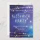 Soirée d'anniversaire de sommeil avec une police étoilée sur un arrière - plan bleu minuit orné d'une guirlande étoilée blanche. Retournez notre invitation moderne pour voir un retour de coordination pour une touche spéciale supplémentaire.