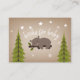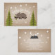 A book request card featuring an illustration of a baby bear lounging on a tree branch surrounded by stars between two evergreen trees. Background is cardstock inspired. Opposite side features poem and illustration of mountains.