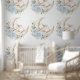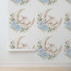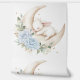 Sleepy Bunny Rabbit Moon Blue Floral Nursery Wallpaper