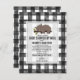 A social distancing baby shower by mail invitation featuring an illustration of a baby bear over a black gingham background. Personalize the black text.