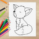 Cute little fox with big ears and bushy tail is yawning sleepily. Suited for colouring.
