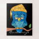 tired droopy-eyed owl on a branch to customize, personalize by changing to your name