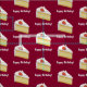 A delicious piece of birthday cake with a personalized text area for you to add a name or change the greeting as you prefer (note: blank text, graphic only pattern is also possible). The layered sponge cake has thick frosting and is shown on a deep crimson background which can be changed to another colour to match your party theme via the EDIT option.