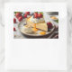 This is an AI generated image. I liked the way the slice of cheese cake looks with the whipped cream and strawberries and blueberries. But, I don't think the fork to the right of the plate looks perfect.