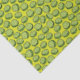 If you like pickles, you'll love the fresh tasty looking green cucumber pickle slices scattered all over this tissue paper on a yellow-green background.