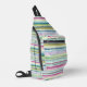 There are six designated areas on this crossbody sling bag where you can add your business text.