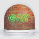 SlipperyJoe illuminé gay néon signe clair éclatant électrique vert lumières lettres montées rouge-brun mur en brique gay pride cadeaux d'identité célébration LGBTQIA urbain industriel look célébration amour identité communauté vivre votre vérité visibilité puissance éclatante contrastes texturés fond de page élégant électrique courbes artistiques casting vivante aura