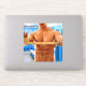 SlipperyJoe muscular man abs locker room tiled flooring gay pride gifts LGBTQIA artistic stretched gymnastic tape shirtless defined torso arms sixpack blue lockers wooden bench gym athletic facility grip strength shirtless chest 6-pack