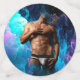SlipperyJoe muscular man underwear bulge vibrant hues blue teal purple cloud-like abstraction gay pride gifts LGBTQIA artistic dreamlike abstract energy psychedelic surrealism cosmic effect surreal and imaginative background hand rests over chest