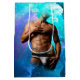 SlipperyJoe muscular man underwear bulge vibrant hues blue teal purple cloud-like abstraction gay pride gifts LGBTQIA artistic dreamlike abstract energy psychedelic surrealism cosmic effect surreal and imaginative background hand rests over chest