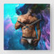 SlipperyJoe muscular man underwear bulge vibrant hues blue teal purple cloud-like abstraction gay pride gifts LGBTQIA artistic dreamlike abstract energy psychedelic surrealism cosmic effect surreal and imaginative background hand rests over chest