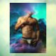 SlipperyJoe muscular man underwear bulge vibrant hues blue teal purple cloud-like abstraction gay pride gifts LGBTQIA artistic dreamlike abstract energy psychedelic surrealism cosmic effect surreal and imaginative background hand rests over chest