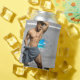 SlipperyJoe's Man towel broken white brick wall bare chest torso muscles cracked floor broken brick wall tropical beach beard dreamy artistic gay pride gifts LGBTQIA grey brown white blue shades unique visual effect