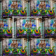 SlipperyJoe's Mardi Gras masks beads decorations speedos vibrant adorned balcony green yellow purple fabrics men embracing each other celebratory festive atmosphere old building weathered walls shutters LGBTQIA gay pride gifts new orleans