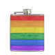 SlipperyJoe's pride wooden flag horizontal rainbow Hip Flask