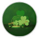 SlipperyJoe's Saint Patrick's Day theme leprechaun hats with yellow buckles gold shamrocks three dimensional look large layered three leaf clovers decorative stage like setting sparkle and Irish celebration gifts smooth minimalistic 3D shapes gold rings framed circular platform rich green background festive polished modern tradition