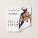 SlipperyJoe's save horse ride straw cowboy hat muscular man shirtless torso holding saddle well-defined physique chiseled six-pack hat chaps saddle black belt silver buckle rancher life muscles rippling wild ride ahead bold rugged western vibe artistic gay pride gifts LGBTQIA yeehaw blue jeans