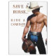SlipperyJoe's save horse ride straw cowboy hat muscular man shirtless torso holding saddle well-defined physique chiseled six-pack hat chaps saddle black belt silver buckle rancher life muscles rippling wild ride ahead bold rugged western vibe artistic gay pride gifts LGBTQIA yeehaw blue jeans