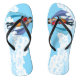 SlipperyJoe's two superheroes kissing flying carto Flip Flops