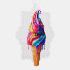 SlipperyJoe's vibrant ice cream cone food classic waffle cone base dessert exudes energy happiness swirling mix of rainbow hues delicious various colours sprinkles glossy slightly melted appearance deliciously indulgent texture gay pride gifts LGBTQIA bright pink lively orange sunny yellow rich blue deep purple artistic cheerful inviting vibe