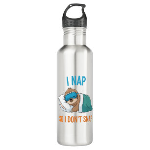 Cute Sloth Blue Stripes Monogram Water Bottle