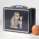 This is a standard metal lunchbox that appears to work just fine. We designed this box ourselves with an uploaded photo and custom text on the front and back. It looks absolutely beautiful except the front of the lunchbox is not centered like it shows in the photo. The print borders don't align with the inset flat part of the box where the preview photo online showed it perfectly centered in there. The back looks nice and centered though.