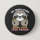 Cute and funny sloth-themed button featuring "My Resolution: More Yoga Less Drama" text with an adorable sloth illustration. Perfect for yoga lovers, relaxation enthusiasts, or anyone who enjoys quirky accessories!