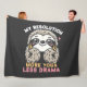 Cozy fleece blanket featuring a cute sloth with the phrase "More Yoga Less Drama" in pastel colours on a dark background. Perfect for yoga lovers, sloth fans, or as a thoughtful relaxation gift for anyone who loves comfort and style.