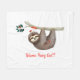 Cute sloth grabbing tree branch with leaves. "Wanna Hang Out?