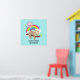 A colourful rainbow behind him along with a pink sun hovering over head. Cute, adorable and trendy.