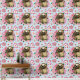 A cute sloth sitting amongst pink flowers in a backdrop of blue