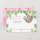 Cute mom and baby sloth in the jungle hanging on a vine with text for a diaper raffle insert card - insert card designed to match our sloth shower invitations!