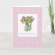 On a light pink tile background pattern, a cute bunny is carrying a bouquet of flowers to bring Easter blessings to anyone this Easter!