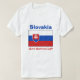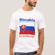 An editable title and slogan accompanies the coat of arms over white, blue and red bands of the Slovakian flag on the front of this t-shirt. The back displays a detailed map of Slovakia.