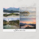 Postcard showing four landscapes with churches in the area of the famous Lake Bled and Lake Bohinj with a white border and the text: 'Slovenia'.