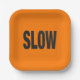 Square Paper Plates printed with Slow Caution Sign wording artwork design illustration by TheFabricSeal at Zazzle #ZazzleMade https://www.zazzle.com/store/thefabricseal