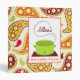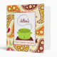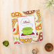 A binder featuring a background design of pink, green, burgundy, orange, and gold paisley. Front features an illustration of a bright green slow cooker. Personalize with your name.