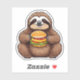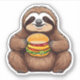 Meet your new favourite sticker – a cute sloth munching on a cheeseburger! This delightful design is perfect for sloth lovers and burger enthusiasts alike, adding a touch of whimsy and charm to any surface.