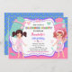 Cute invitation for teen girls celebrating birthday with a sleepover. This slumber birthday invitation featuring two cute little girls, two beds, some beautiful owls and night stars at the background.