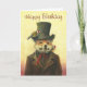 This card is illustrated with a sly Victorian fox in a top hat with two goldfinch perched on him.