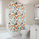 This shower curtain has a mid-century modern design of small, rounded triangles with white centres and ovals, in the middle in 70s colours, overlapping each other. Want different colours? Message me.