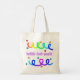 These bags were super cute (I purchased 3). The material is more of a canvas look & feel. The colour of the bag is slightly off white, but the letters look exactly as pictured. I took 3 photos in different lighting. Would recommend! I liked how there was an option to choose the font and colour of the name. The words are legible and the colours are exactly as pictured.