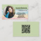 This colourful watercolor business card design features a photo placeholder with template business details on the front and QR Code on the back. Replace the placeholder photo with your photograph and the QR Code link with a link to your website, reviews or other business related location. Fill in the personalize fields, remove any text or edit using the design tool to select a font style, size, and colour you like. The placeholder photo is courtesy Pexels.com.