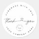 Round stickers with hearts, the text "handmade with love" and your custom name and website URL or other custom text on a white background. The word "Thank you" is written in an elegant calligraphy script font. Use as envelope seals, stickers for gifts and favours, product packaging etc