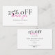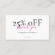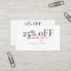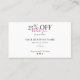 A minimal and elegant small business thank you discount card featuring a clean white layout with bold black text and soft blush script accents. Designed with space for a discount offer, coupon code, business name, and social media icons, this editable card is perfect for packaging inserts, order thank you cards, and customer appreciation. It helps encourage repeat purchases while creating a polished branded experience.
