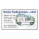 Small Business with Name on a Company Van. Colour illustration of a driver at the wheel of a white van. Illustration appears on both sides of the business card. Perfect for a Courier services business or delivery man and van calling-card.