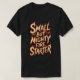 The phrase Small But Mighty Fire is written in a bold, stylized font. Each letter is formed from stylized flames, creating a visually striking and energetic design.